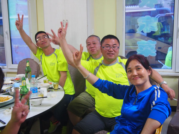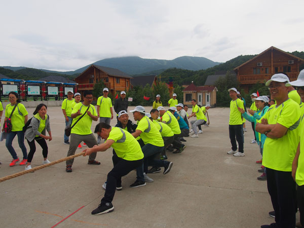 14日清晨,“微風(fēng)與腳步同行,陽光共笑容一色”,亞布力鍋盔山我們來了,急切要投入青山綠水的懷抱,三個(gè)小時(shí)的車程,到了目的地大家下車首先看到的就是驚喜,我們住的是林區(qū)的木制別墅,房間里充滿了樹木的清香。大家放下包來到飯店,中午公司給大家準(zhǔn)備了可口的飯菜,大家不知是餓了還是農(nóng)家綠色菜肴的美味,吃得個(gè)快活逍遙。大家快速吃完飯就來到了拓展訓(xùn)練場地集結(jié)。